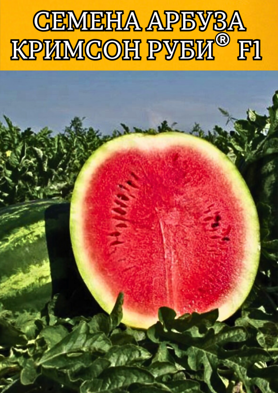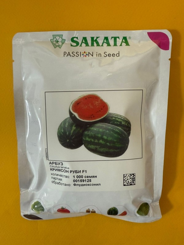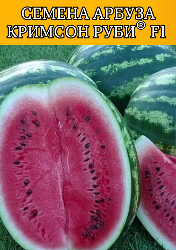 Арбуз Кримсон Руби F1 — ранний диплоидный гибрид типа Кримсон Свит от компании Sakata (Япония). Срок созревания: 60–63 дня от всходов, подходит для открытого грунта и пленочных укрытий.