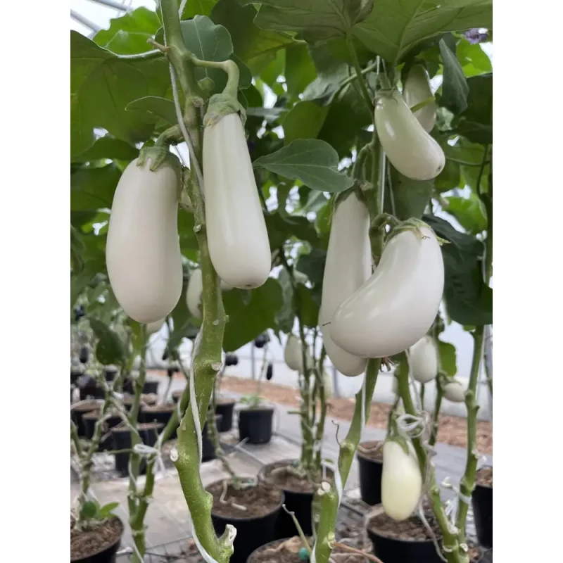 Баклажан Коби F1 от японской селекционной компании Atakama Seeds — это среднеспелый сорт, выделяющийся необычной белой окраской плодов и изысканным вкусом. Его ключевые особенности — компактное растение, молочно-белая мякоть без горечи с тонким грибным ароматом и универсальность использования.