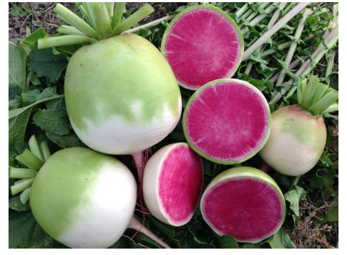 Дайкон Старберст F1 от компании Sakata — это уникальный среднеранний гибрид, поражающий своим необычным внешним видом и отличными вкусовыми качествами. Его ключевые особенности — округлая форма корнеплода, насыщенно-розовая мякоть и сладкий, нежный вкус.