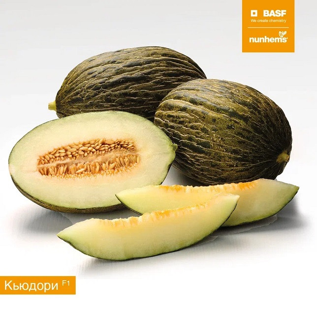 Плоды имеют классический для «шкуры жабы» внешний вид — зелёную морщинистую кору, что является визитной карточкой качества для знающих покупателей. Кьюдори F1 — это идеальный выбор для фермеров, которые хотят предложить рынку не просто сладкую, а именно вкусную, ароматную дыню с характером, а также для тех, кому важны высокая отдача с гектара и способность собранного урожая долго сохранять свои премиальные качества.