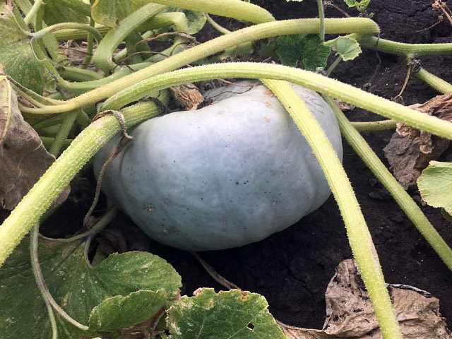 Плод: 3-5 кг (до 2 кг при загущении), плоскоокруглый, без ребер, серый