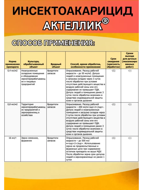 Актеллик несистемный фосфорорганический инсектоакарицид кишечно-контактного действия для защиты складских помещений и запасов зерна при хранении от комплекса амбарных вредителей
